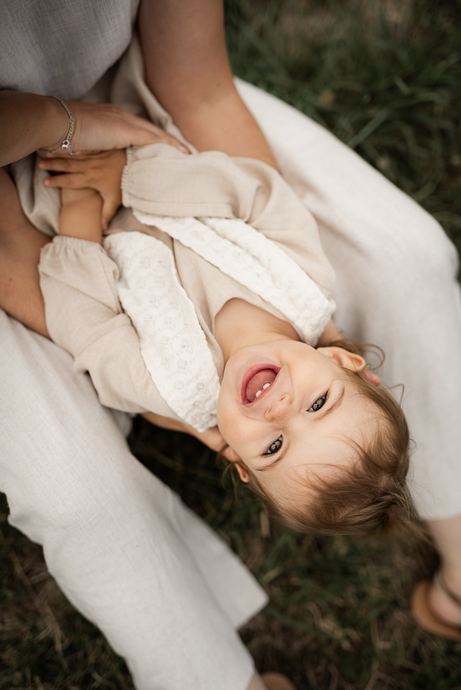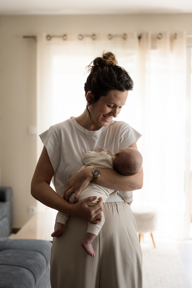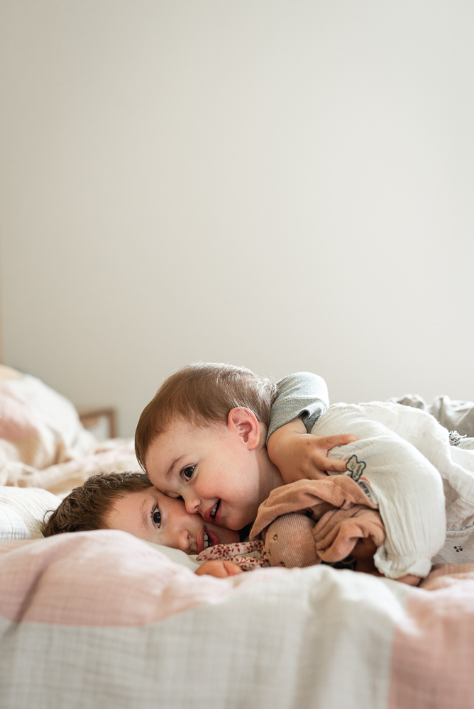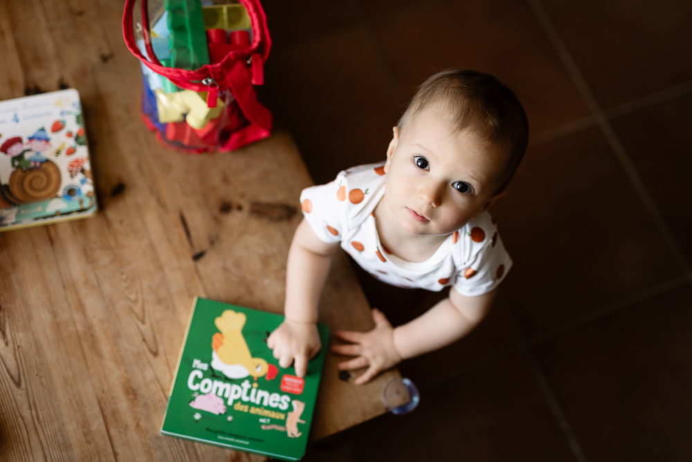 Très simplement ! Je me glisse dans votre quotidien, puis on papote, on joue, on rit ! Vous terminez votre petit déjeuner, vous faites des câlins, vous jouez à cache-cache… Vos enfants me montrent leur chambre, leur plus beau tracteur, leurs plus grosses peluches, vous leur lisez un livre, vous donnez un biberon… Mon but : mettre en images votre « vraie » vie, ce qu’on appelle la photographie lifestyle. Je n’apporte ni éclairage, ni tenues, ni accessoires.